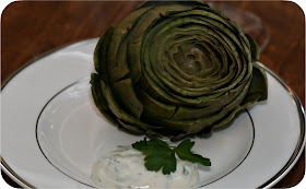That artichoke looks so pretty, like a rose. Loves it. I'm shocked, except not really, that you didn't like your experimental college days artichoke (as soon as I read that sentence, I thought it sounded very "bisexual for second semester of sophomore year" so I'm glad you clarified your statement). We used to eat that as a special treat at home, melted butter and yumalicious artichoke. I NEVER ate the hearts until college though. Strange.