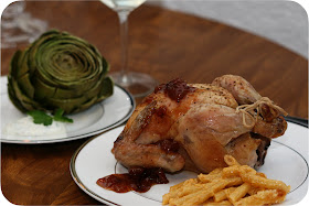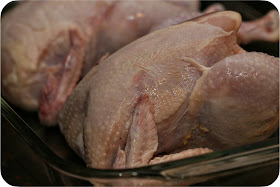 first up were the cornish hens. at the strip we found these big guys for $4 each. a bargain, i'd say. this recipe couldn't be easier and little tiny birds are a good way to start roasting if you haven't done it before. plus, these only take about 30 minutes...so you don't have to plan a fancy day of cooking if you don't have the time for that.