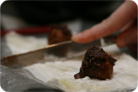 no valentine's meal is complete without dessert. and dessert is rarely complete without chocolate. but i've made many chocolate treats so when searching through intercourses (if you don't remember, it's an aphrodisiac cookbook), i wanted something more than just "death by chocolate" (more! what more?). when i got to the chapter on figs, it became clear i would use one of the recipes, but they all looked so good...then i came to the chocolate fig bundle page and it practically chose itself.