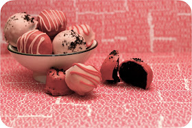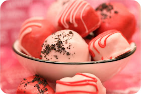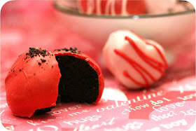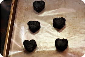 let's start this off by giving credit where credit is due. these oreo truffles are 100% inspired by bakerella - the heart cut outs, the instructions, everything. my coworker said she's had these before, years ago, so i'm sure they're not original...but i got them from bakerella (whose pictures and ideas are fabulous) and i am attributing them to her :)