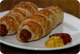 unfortunately, i did not douse them in 2 lbs of butter and they just didn't have the same taste as the pretzel shop dogs. they weren't bad, but the dough was much thicker and and the hot dog got a litle lost. i still enjoyed this unhealthy, non-nutricious dinner. i'd like to try again because i've been wanting to make my own dough anyway. and when i do it, i'm going to go hog wild and add the butter. it's just not worth it without.