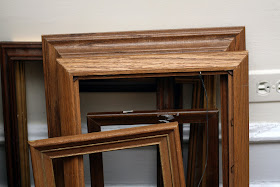 i love this. it was cheap, easy, and i think it looks fantastic. a perfect way to re-purpose old frames you might have - the more variety and wear and tear, the better it looks.